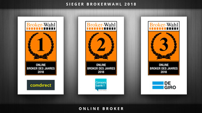 In der Hauptkategorie Online Broker des Jahres 2018 konnte sich die comdirect den Titel vom Vorjahressieger Consorsbank zurückholen, während Degiro den 3. Platz aus 2017 verteidigen konnte.Zwar verlor die Consorsbank diesen wichtigen Titel, dafür konnte der Broker aus Nürnberg aber in zwei Kategorien, in denen man 2017 noch auf Platz 2 gelegen hatte, den Titel erringen: Daytrade Broker des Jahres 2018 und Futures Broker des Jahres 2018. Bei den Daytrade Brokern gingen die Plätze 2 und 3 an Degiro und ViTrade und bei den Futures Brokern an WH Selfinvest und Lynx.In der Kategorie Forex Broker des Jahres konnte GKFX den Titel recht klar verteidigen (vor ActivTrades und JFD Brokers), während dies IG in der Kategorie CFD Broker des Jahres nur ganz knapp vor Admiral Markets und CMC Markets gelang.