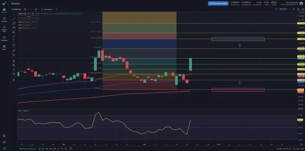 Das Wertpapier des US-Konzerns Walmart legte am Donnerstag im Rahmen der Vorlage der neuesten Quartalszahlen mehr als ordentlich zu. An der New Yorker Wertpapierbörse „NYSE“ schloss die Aktie mit einem Kursgewinn von 6,46 Prozent zu einem Kurs von 107,11 US-Dollar. Auf Basis dieses Schlusskurses bringt das US-Einzelhandelsriese eine Marktkapitalisierung in Höhe von rund 854 Milliarden…