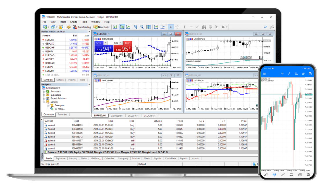 Die MetaTrader 5 (MT5)-Plattform bei Tickmill ist eine weiterentwickelte Handelsplattform der MetaTrader-Reihe, die im Vergleich zu ihrem Vorgänger mit erweiterten Analyse- und Trading-Funktionen ausgestattet ist. Sie bietet Händlern die Möglichkeit, eine Vielzahl von Finanzinstrumenten zu handeln, darunter CFDs auf Forex, Indizes, Aktien, Rohstoffe und Anleihen. Die Plattform ist über Desktop-Anwendungen für Windows und MacOS, als WebTrader im Browser sowie über mobile Apps für Android und iOS zugänglich, was eine flexible Nutzung über unterschiedliche Geräte ermöglicht.