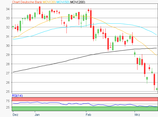 Die im DAX enthaltene Aktie des Konzerns Deutsche Bank notierte am 17. Oktober 2025 via Xetra auf einem hier für die Analyse relevanten Zwischentief von 28,23 Euro. Seitdem kletterte die Aktie bis zum 06. Januar 2026 auf ein Zwischenhoch von 34,26 Euro. Zuletzt handelte die DeutscheBank Aktie im Bereich rund um die 25,50 Euro Marke.…