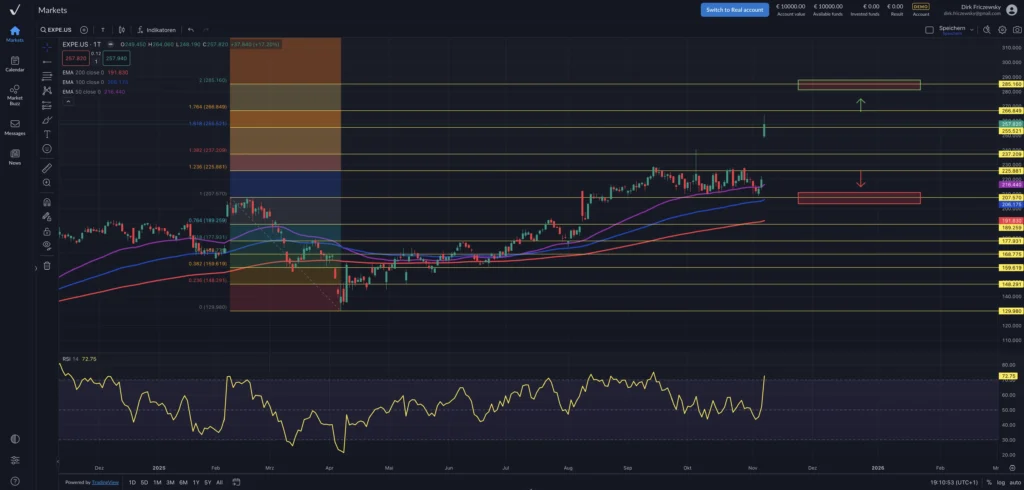 Die Aktie der Expedia Group schob sich am Freitag mit einem gewaltigen Kurssprung auf die Pole Position im S&P500. Zum Handelsende an der Wall Street schloss die Aktie mit einem Kursgewinn von 17,55 Prozent und einem Kurs von 258,25 US-Dollar an der Technologiebörse NASDAQ. Auf Basis dieses Schlusskurses bringt die Expedia Group eine Marktkapitalisierung von…