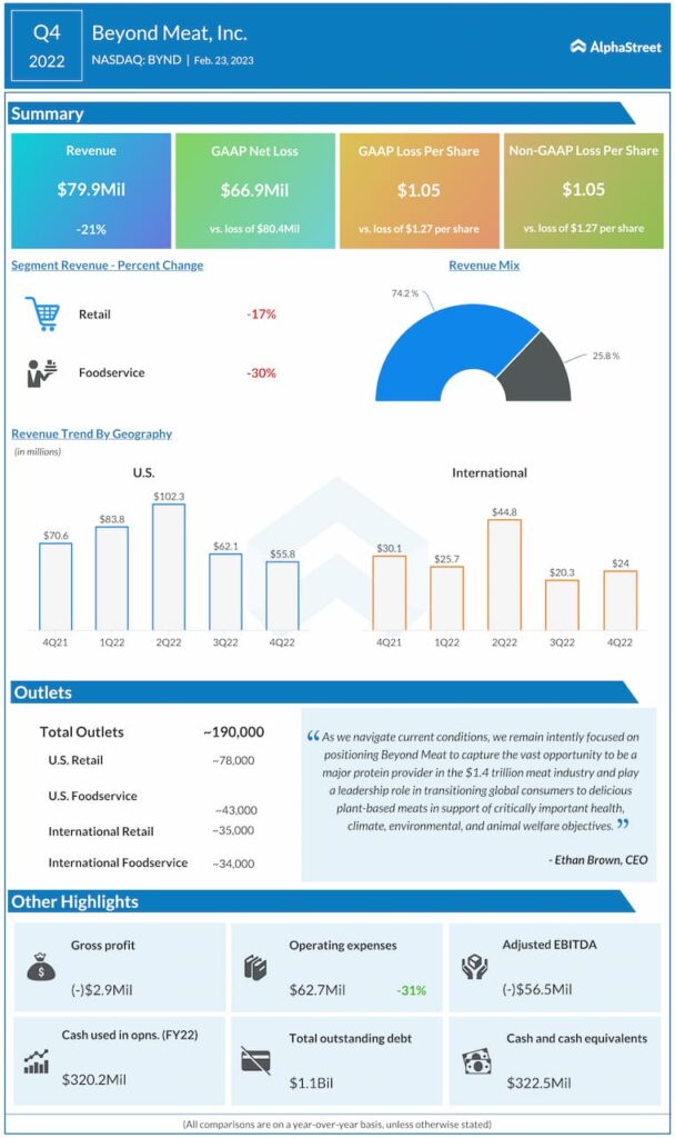 XTB: Die Aktie von Beyond Meat (BYND.US) stieg am Freitag um mehr als 15%, nachdem der Hersteller von pflanzlichen Fleischersatzprodukten im vierten Quartal einen geringer als erwarteten Verlust auswies, obwohl der Umsatz im Vergleich zum Vorjahr um mehr als 20% zurückging. Das Unternehmen prognostizierte außerdem solide Umsatzsteigerungen für das kommende Jahr. Beyond Meat verzeichnete laut FactSet…
