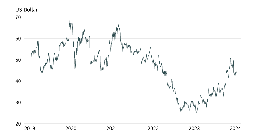 Société Générale: Die Intel-Aktie hatte oberhalb des im Oktober 2022 bei 24,59 USD markierten Tiefs eine übergeordnete bullishe Trendwende vollzogen. Bis auf ein im vergangenen Dezember bei 51,28 USD verbuchtes 21-Monats-Hoch kletterte das Papier. Die anschließend eingeleitete ausgeprägte Korrekturphase schickte die Notierung bis auf im Mai gesehene 29,73 USD zurück. Die oberhalb dieser Marke etablierte Stauzone…