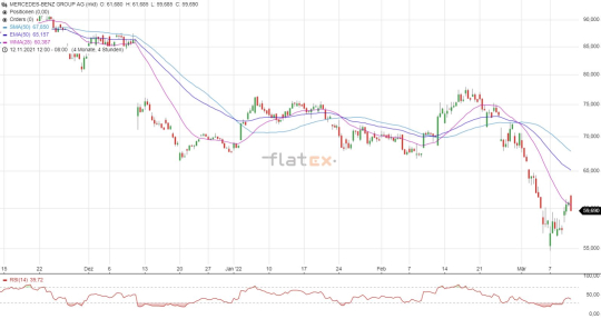 Die Aktie des DAX-Konzerns Mercedes-Benz notierte am 17. Februar 2022 auf einem Hoch von 77,90 Euro. Bis zum 07. März 2022 korrigierte das Wertpapier auf ein Zwischentief von 54,67 Euro. Aktuell notiert…