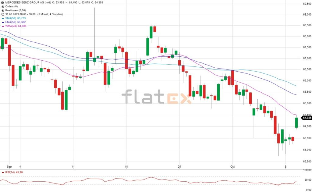 flatex: Die Aktie des DAX-Konzerns Mercedes-Benz notierte am 16. Juni 2023 via Xetra auf einem letzten hier für die Analyse relevanten Zwischenhoch von 76,10 Euro. Seitdem korrigierte die Aktie bis zum 31. Oktober 2023 auf ein Zwischentief von 55,08 Euro. Zuletzt bewegte sich die Merceds-Benz Aktie zwischen 62 und 74 Euro – mit klar Tendenz…