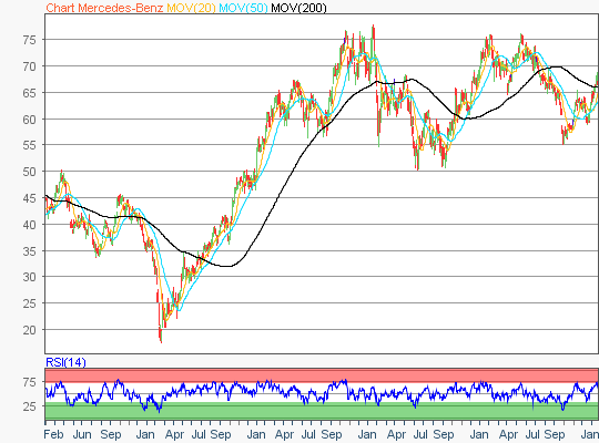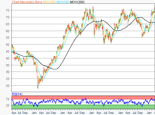 flatex: Ein Umsatzplus von rund acht Prozent im ersten Quartal meldete der Autohersteller Mercedes-Benz am vergangenen Freitag. Dies reichte zum Handelsschluss für ein moderates Plus von 0,74 Prozent auf 70,58 Euro bei der Aktie. Die nächsten Widerstände auf der Oberseite liegen bei 71,31 Euro, 72,77 Euro, 74,59 Euro und 75,92 Euro. Die entscheidenden Unterstützungen sind…