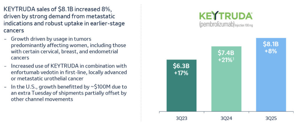 Merck (MRK) ist ein globales biopharmazeutisches Unternehmen, das sich auf innovative verschreibungspflichtige Medikamente und Impfstoffe spezialisiert hat. Der Hauptwachstumsmotor ist das Onkologiesegment. Das Immuntherapeutikum Keytruda ist das Schlüsselprodukt und trägt den Großteil des Umsatzes im Pharmasegment. Das zweitwichtigste Gebiet sind Impfstoffe, einschließlich Gardasil und der neue Caverix. Krankenhausmedikamente und Kardiopulmonologie folgen, wobei Winrevair, ein Medikament…