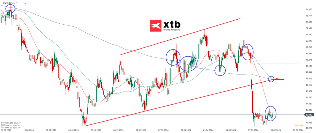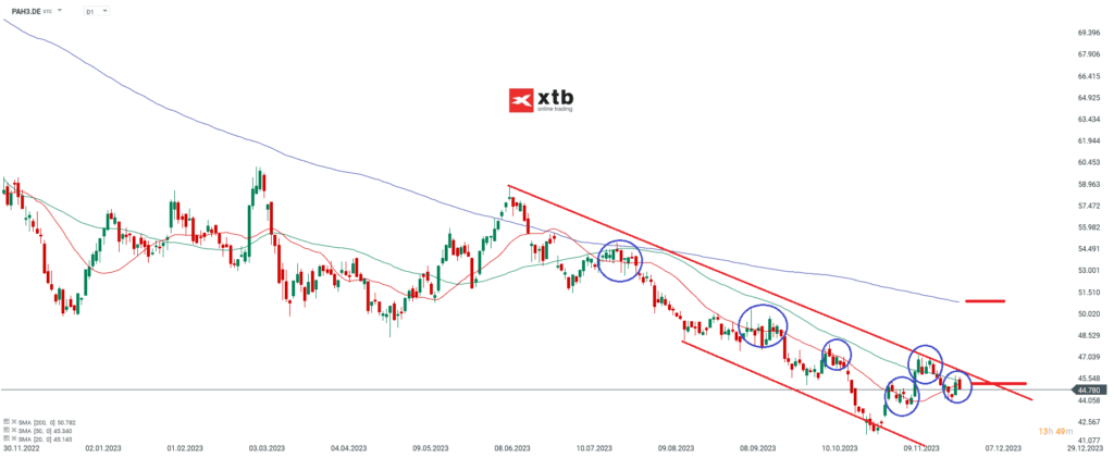 XTB: Das Wertpapier konnte sich zu Jahresbeginn etwas aufwärtsschieben und ein Jahreshoch bei 30,16 EUR formatieren. Das Hoch wurde nachfolgend abverkauft, es ging kontinuierlich abwärts bis in den Bereich der 45/42 EUR. Hat die Aktie in diesem Bereich einen Boden gefunden? Fundamentaldaten Porsche: aktueller Preis 44,77 EUR Marktkapitalisierung 6,93 Mrd. EUR Umsatz 2022 …