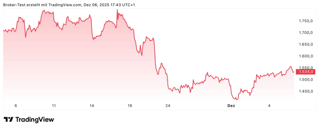 Die Rheinmetall AG, Düsseldorfs traditionsreicher Rüstungskonzern, hat 2025 eine bemerkenswerte Entwicklung durchlaufen. Von 604 Euro zu Jahresbeginn kletterte die Aktie auf ein 52-Wochen-Hoch von 2.008 EUR – ein Anstieg, der maßgeblich durch die NATO-Aufrüstung und die anhaltende Ukraine-Nachfrage befeuert wurde. Aktuell notiert das Papier bei 1.536 Euro. Während die Jahresperformance mit einem Plus von über…
