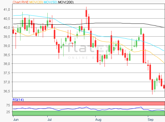 ActivTrades: Das Wertpapier der RWE AG ging am Montag, den 13. November 2023 mit einem mageren Plus von 0,08 Prozent und einem Kurs von 36,31 Euro via Xetra aus dem Handel. Am Dienstag bewegte sich die Aktie vorbörslich bereits rund um die Ausgabe der Quartalszahlen zeitweise um einen Prozentpunkt aufwärts. Mit dem Schlusskurs vom Montag wies…