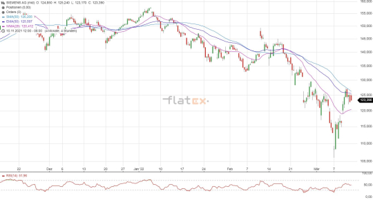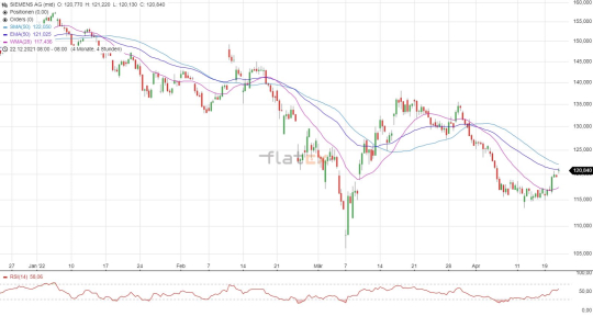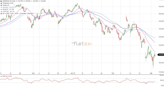 Die Aktie des DAX-Konzerns Siemens notierte am 04. Februar 2022 auf einem letzten Zwischentief von 132,84 Euro. Danach konnte das Wertpapier bis auf ein Zwischenhoch vom 10. Februar 2022 auf 149,26 Euro…