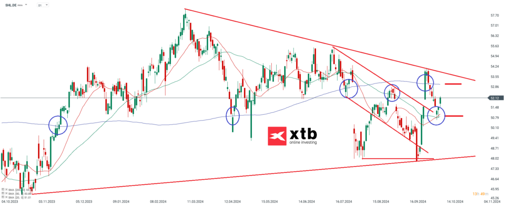 XTB: Die Siemens Healthineers Aktie ist in den letzten Handelsmonaten übergeordnet seitwärts gelaufen, der Aktie fehlt aber aktuell die Phantasie. Die Geschäftsentwicklung des Konzerns ist stabil und solide. Siemens Healthineers Fundamentaldaten aktueller Preis 52,02 EUR Marktkapitalisierung 57,58 Mrd. EUR Umsatz 2023 21,68 Mrd. EUR Eigenkapitalquote 38,95 % KGV 2024* 29,90 4 Wochen Performance +…