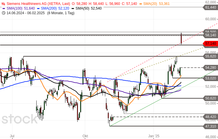 Die im DAX enthaltene Aktie des Konzerns Siemens Healthineers notierte am 13. Februar 2025 via Xetra auf einem Zwischenhoch von 58,48 Euro. Seitdem korrigierte die Aktie bis zum 07. April 2025 auf ein Verlaufstief von 41,21 Euro. Zuletzt handelte die Siemens Healthineers Aktie im Bereich rund um die 47 Euro Marke. Aufgrund dieses Kursverlaufs wären…