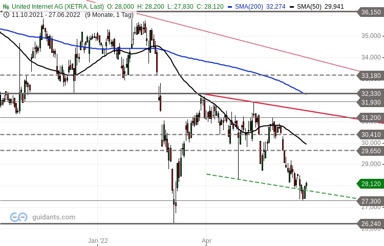 Die Aktie des Tec-DAX-Konzerns United Internet bildete am 23. April 2019 ein Zwischenhoch von 37,25 Euro aus. Danach fiel das Wertpapier bis auf ein Verlaufstief vom 15. Mai 2019 auf 30,34 Euro zur…