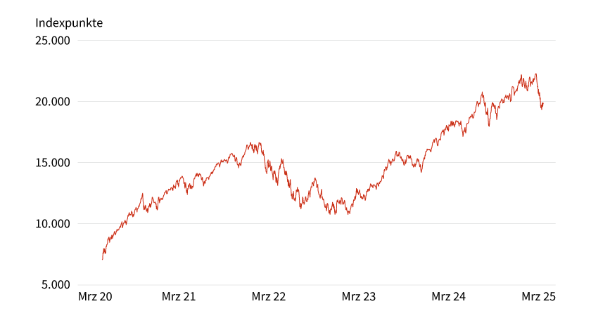 So eine Talfahrt gibt es selten: Der viel beachtete Nasdaq 100-Index erreichte am 19. Februar 2025 sein bisheriges Allzeithoch bei 22.222,61 Punkten. Nicht einmal einen Monat später notierte er im Tief bei 19.152,57 Punkten (Jahrestief), was einem Verlust von 13,8 Prozent entspricht. Zur Einordnung: Analysten sprechen ab 20 Prozent Kursverlust vom letzten Hoch bereits von…