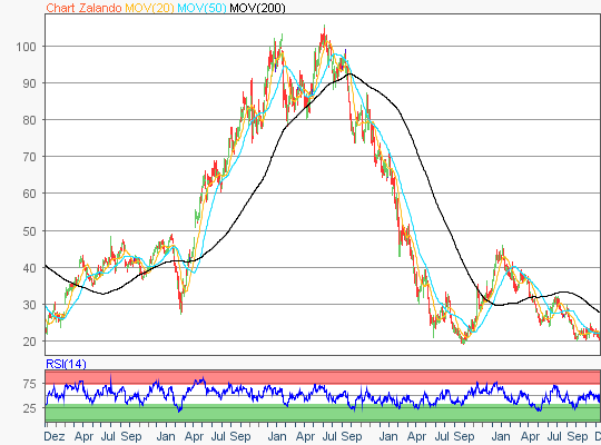 Die Aktie des MDAX-Konzerns Zalando notierte am 17. Dezember 2018 bei 20,99 Euro auf einem Verlaufstief. Das Wertpapier kletterte danach bis zum 28. Januar 2019 auf ein Zwischenhoch von 30,59 Euro….