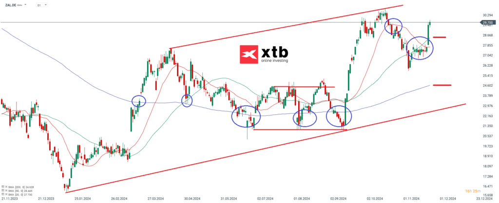 Die Aktie des DAX-Konzerns Zalando notierte am 17. Oktober 2024 via Xetra auf einem hier für die Analyse relevanten Zwischenhoch von 30,82 Euro. Seitdem korrigierte das Wertpapier bis auf ein Zwischentief vom 06. November 2024 auf 25,79 Euro. Zuletzt konnte die Zalando Aktie von rund 27 Euro auf fast 35 Euro zulegen. Aufgrund dieses Kursverlaufs…