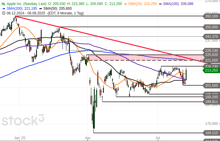 Aktie im Fokus: Apple – fällt die Aktie unter die 200-Tage -Linie?