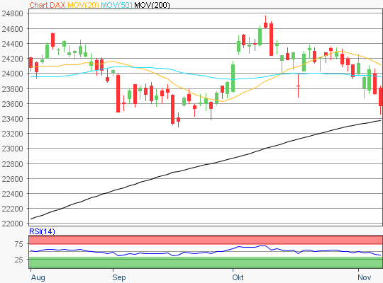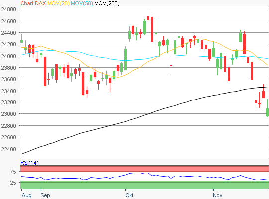 Der Xetra-DAX beendete den Dienstag mit einem weiteren Kursverlust von 1,74 Prozent und 23.180,53 Punkten. Das Handelsvolumen via Xetra betrug rund 4,134 Milliarden Euro. Die führenden europäischen Indizes in Amsterdam, London, Madrid, Mailand, Paris und Zürich knüpften an die Abgaben des Vortages an und fielen am Dienstag abermals durchweg zurück. Der Euro Stoxx50 schloss mit…