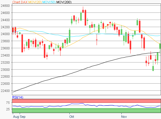 Der Xetra-DAX beendete den Donnerstag mit einem leichten Kursplus von 0,18 Prozent und 23.767,96 Punkten. Das Handelsvolumen via Xetra betrug lediglich recht dünne 2,10 Milliarden Euro. Der fehlende US-Handel wirkte sich demnach auf das Handelsvolumen aus. Die US-Börsen blieben aufgrund des US-Nationalfeiertags „Thanksgiving“ geschlossen. An der NASDAQ und der NYSE, sowie an den Terminmärkten in…