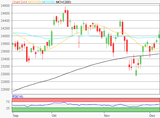 Der Xetra-DAX schloss am Donnerstag mit einem Kursplus von 0,61 Prozent und 23.934,13 Punkten. Das Handelsvolumen via Xetra betrug am Montag rund 3,02 Milliarden Euro. Die führenden europäischen Aktienindizes in Amsterdam, London, Madrid, Mailand und Paris konnten am Donnerstag hinzugewinnen, während der SMI in Zürich leicht zurückfiel. Der EuroStoxx50 konnte um 0,46 Prozent auf 5.343,15…