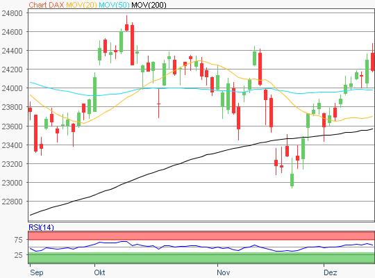 Der Xetra-DAX schloss am Freitag, den 12. Dezember 2025 mit einem Kursverlust von 0,45 Prozent und 24.186,49 Punkten. Das Handelsvolumen via Xetra betrug rund 3,03 Milliarden Euro. Den Tagessieg holte sich das Wertpapier von E.ON mit einem Kursplus von 1,86 Prozent und einem Schlusskurs via Xetra von 15,30 Euro. Die rote Laterne im DAX40 bekam…