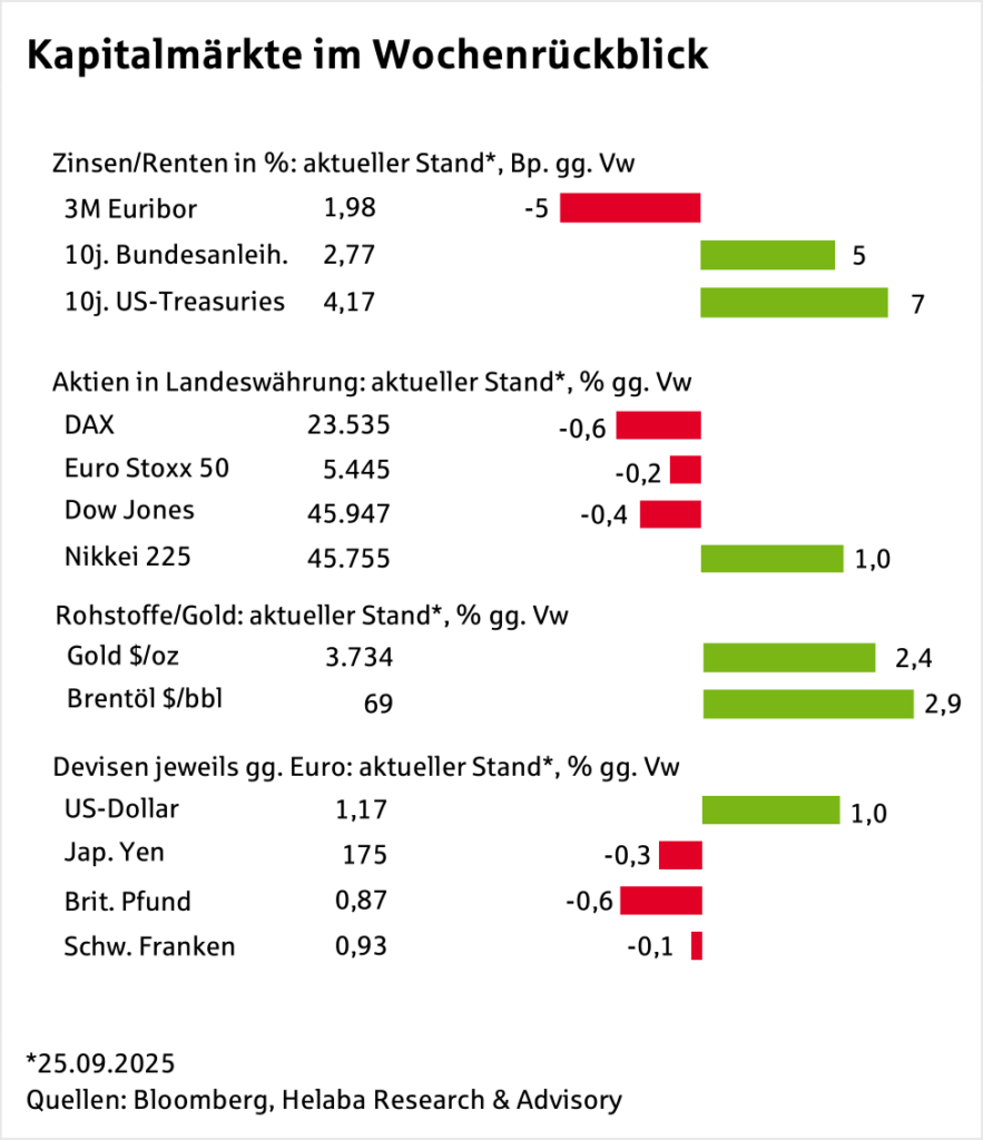 Die Luft ist erst mal raus, auch wenn der saisonal schwierige September an den Finanzmärkten diesmal kaum durchgeschlagen hat. Es fehlt jedoch an positiven Impulsen, sowohl für Aktien als auch für Renten. In der abgelaufenen Handelswoche kamen beide Assets nicht so recht vom Fleck. Rohstoffe hingegen sind die klaren Gewinner: Der Ölpreis legt knapp 3% zu,…