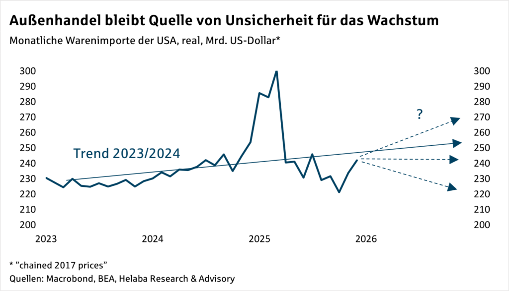 Mit der Entscheidung des Obersten Gerichtshofes (SCOTUS) der USA am 20. Februar zu Präsident Trumps Zöllen von 2025 ist das Thema „US-Handelspolitik“ wieder in den Fokus gerückt. Wir haben uns bereits an anderer Stelle mit der aktuellen Lage an der Handelsfront auseinandergesetzt. Für die zentralen Größen hinsichtlich des Ausblicks für Konjunktur, Inflation und Fed sind…