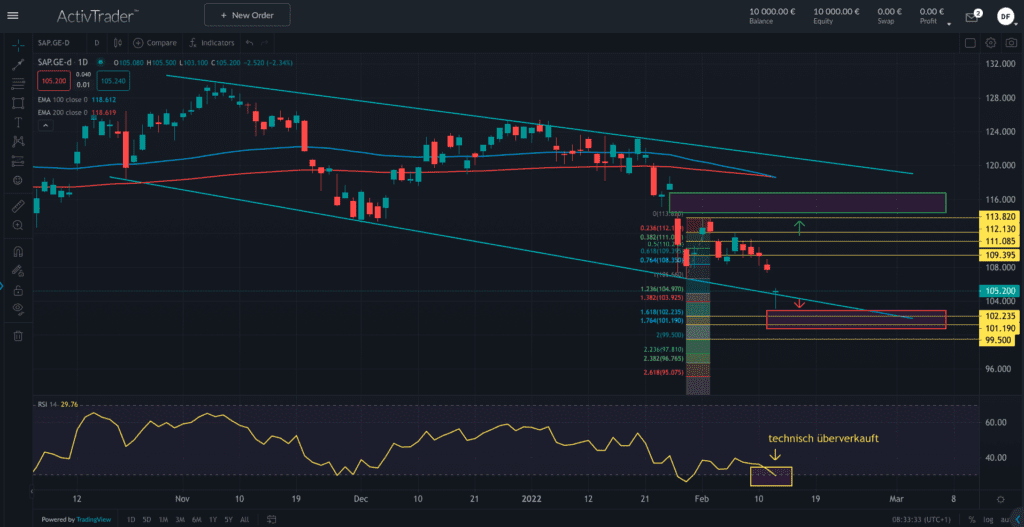 Die Aktie der SAP kam in den letzten Monaten gemeinsam mit dem US-Technologiesektor unter die Räder und fiel seit dem letzten Zwischenhoch des 05. November 2021 von 129,74 Euro am Montag bis auf 103,10…