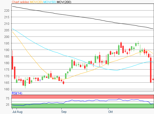 Zuletzt handelte die Adidas Aktie im Bereich rund um die 164 Euro Marke.
