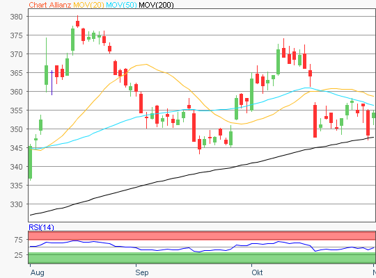 Zuletzt handelte die Allianz Aktie im Bereich rund um die 354 Euro Marke.