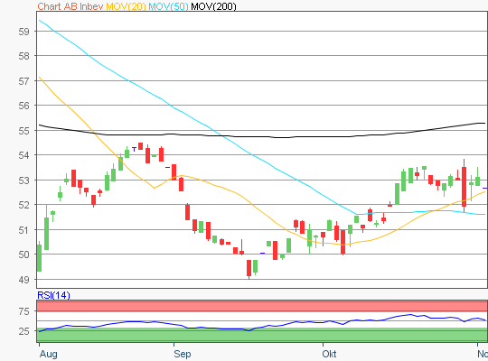 Zuletzt handelte die Anheuser-BuschInbev Aktie im Bereich rund um die 54 Euro Marke.