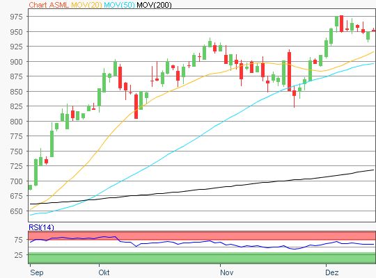 Zuletzt handelte die ASML Aktie im Bereich rund um die 948,9 Euro Marke.