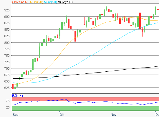 Zuletzt handelte die ASML Aktie im Bereich rund um die 934 Euro Marke.
