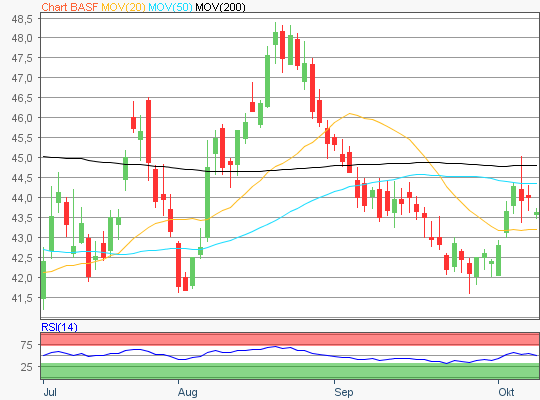 Zuletzt handelte die BASF Aktie im Bereich rund um die 43,5 Euro Marke.
