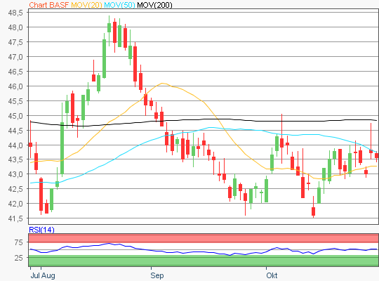 Zuletzt handelte die BASF Aktie im Bereich rund um die 43,5 Euro Marke.
