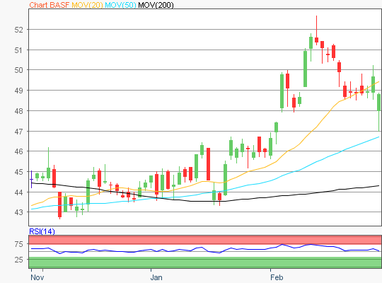 Zuletzt handelte die BASF Aktie im Bereich rund um die 48,95 Euro Marke.