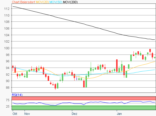 Zuletzt handelte die Beiersdorf Aktie im Bereich rund um die 97,46 Euro Marke.
