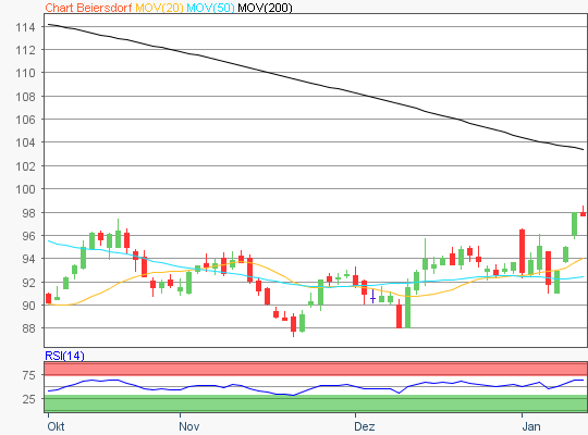 Zuletzt handelte die Beiersdorf Aktie im Bereich rund um die 98 Euro Marke.