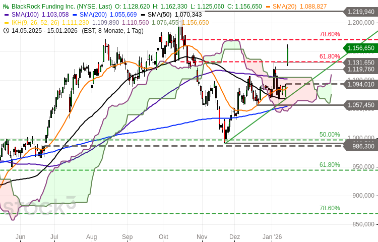 Die BlackRock-Aktie bewegt sich in einem intakten langfristigen Aufwärtstrend. Auf Sicht der vergangenen zwölf Monate kletterte sie um rund 16%. Zuletzt hatte der Wert nach dem Markieren eines Rekordhochs bei 1.220 USD im vergangenen Oktober eine Korrekturphase eingeleitet, die die Notierung bis auf 990,58 USD drückte.