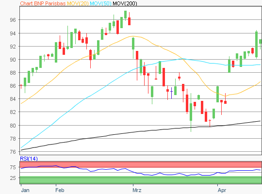 Zuletzt handelte die BNPParibas Aktie im Bereich rund um die 94 Euro Marke.