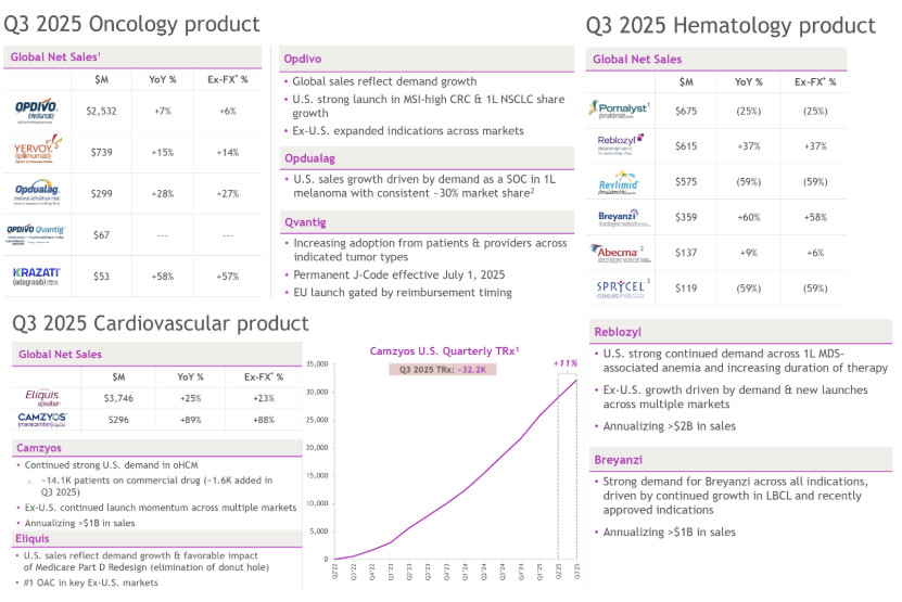 In der Hämatologie wachsen Reblozyl und Breyanzi um 37% bzw. 60% im Jahresvergleich, beide Präparate erreichen bereits eine jährliche Verkaufsrate von über 1–2 Milliarden USD. Im kardiovaskulären Block steigert Camzyos den Umsatz um 89% im Jahresvergleich auf 296 Millionen USD, und seine Patientenbasis in den USA wächst weiter; Eliquis bleibt mit einem Wachstum von 25% im Jahresvergleich auf 3,7 Milliarden USD ein Anker im Portfolio.