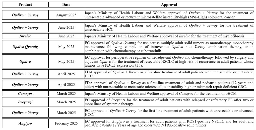 Der Kauf von 2seventy bio für 286 Millionen USD ermöglichte es, die Wirtschaftlichkeit der CAR-T-Zelltherapie Abecma zu konsolidieren, das heißt, den Aktionären einen vollständigeren finanziellen Effekt aus dem Wachstum dieses Marktes zu sichern. Bereits im Jahr 2025 erhalten einige dieser Assets und Kombinationen neue Indikationen und Label-Erweiterungen, wie aus der Liste der jüngsten regulatorischen Zulassungen ersichtlich ist.