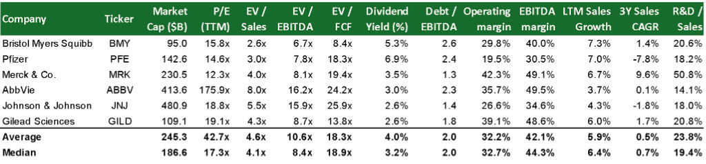 Ein vergleichender Schnitt bei großen Pharmaunternehmen zeigt ein Bild: Mit einem EV/EBITDA von etwa 6,7x und einem EV/FCF von 8,4x wird BMY mit einem Discount zur Medianpeers (8,4x und 18,9x respektive) gehandelt.