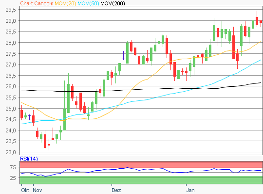 Zuletzt handelte die Cancom Aktie im Bereich rund um die 28,10 Euro Marke.