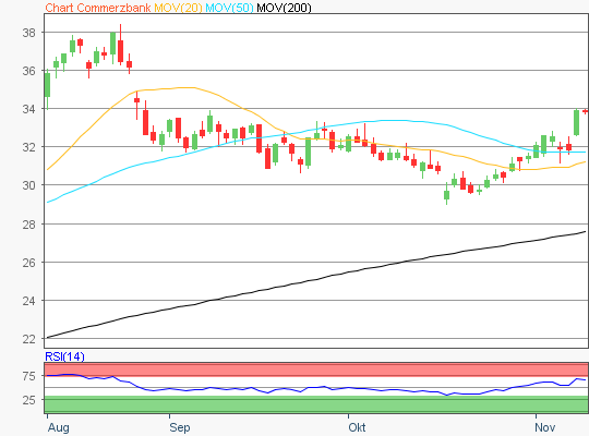 Zuletzt handelte die Commerzbank Aktie im Bereich rund um die 34,56 Euro Marke.