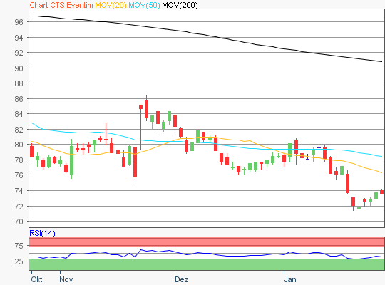 Zuletzt handelte die CTSEventim Aktie im Bereich rund um die 73,4 Euro Marke.