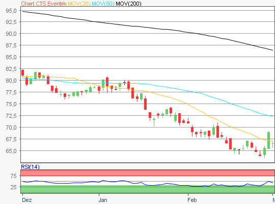 Zuletzt handelte die CTSEventim Aktie im Bereich rund um die 68,85 Euro Marke.