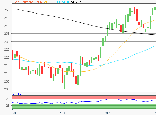 Zuletzt handelte die DeutscheBörse Aktie im Bereich rund um die 250 Euro Marke.