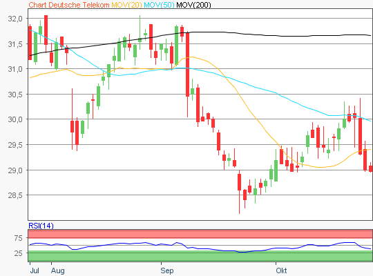 Zuletzt handelte die DeutscheTelekom Aktie im Bereich rund um die 29 Euro Marke.